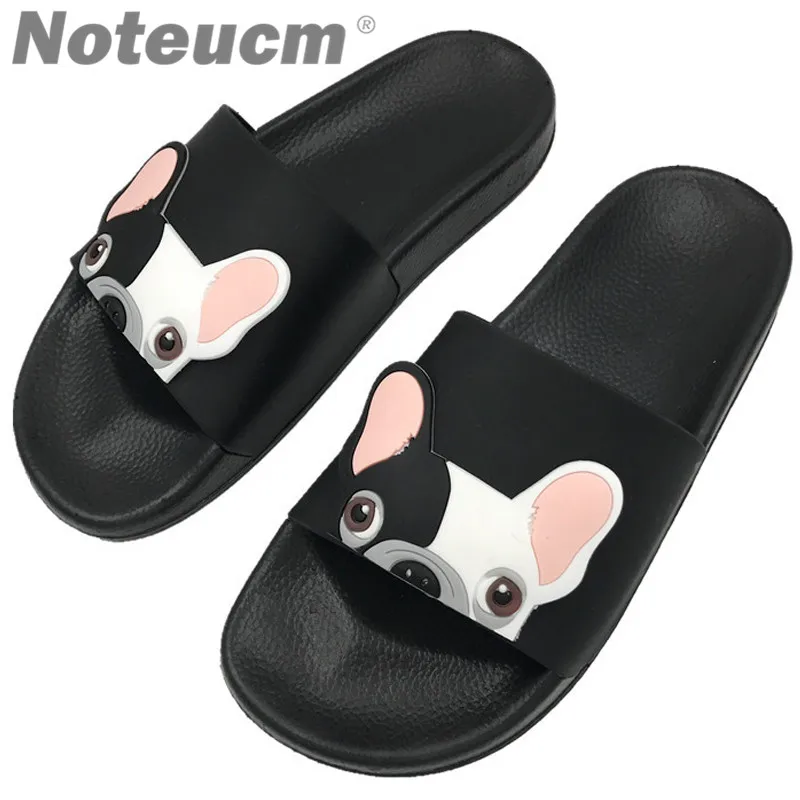Goede Kopen Zomer vrouwelijke femme tong sliders Cartoon bad dames huose Slaapkamer strand buiten slipper platte zwembad schoenen bulldog slides voor vrouwen Goedkoop