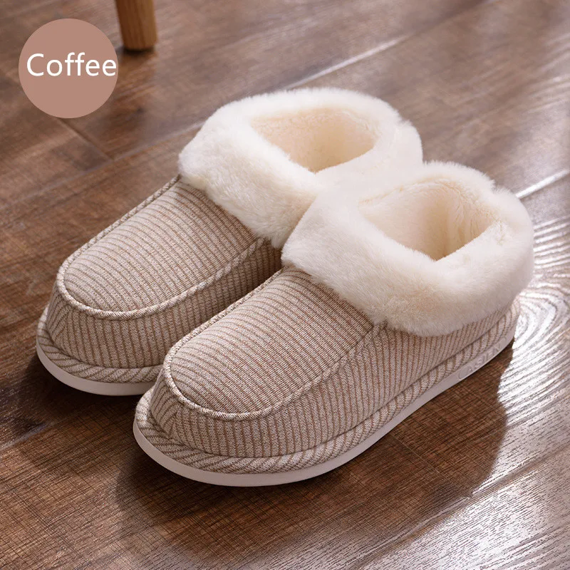 Kopen Goedkoop Suihyung Winter Warm Indoor Katoen Schoenen Unisex Gestreepte Pluche Thuis Slippers Liefhebbers Slaapkamer Vloer Slip Op Furry Platte Schoenen 35 46 Online