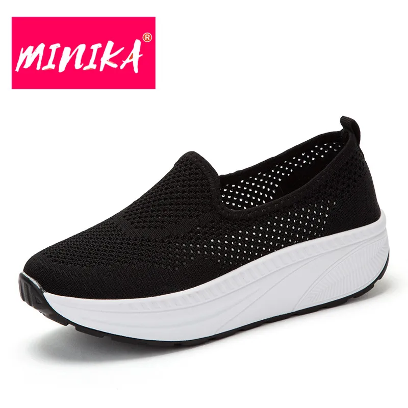 Kopen Goedkoop MINIKA Ondiepe Mond Vrouwen Platte Schoenen Effen Kleuren Ademend Vrouwen Mesh Schoenen Dikke Bodem Ultralight Vrouwen Casual Schoenen Prijs.