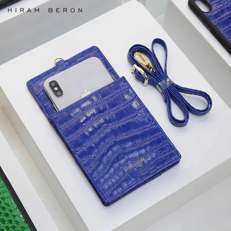 Beste Koop Horologii Mode Telefoon Wallet case mobiele telefoons credit card slots met lanyard koe leer met krokodil patroon custom naam Goedkoop