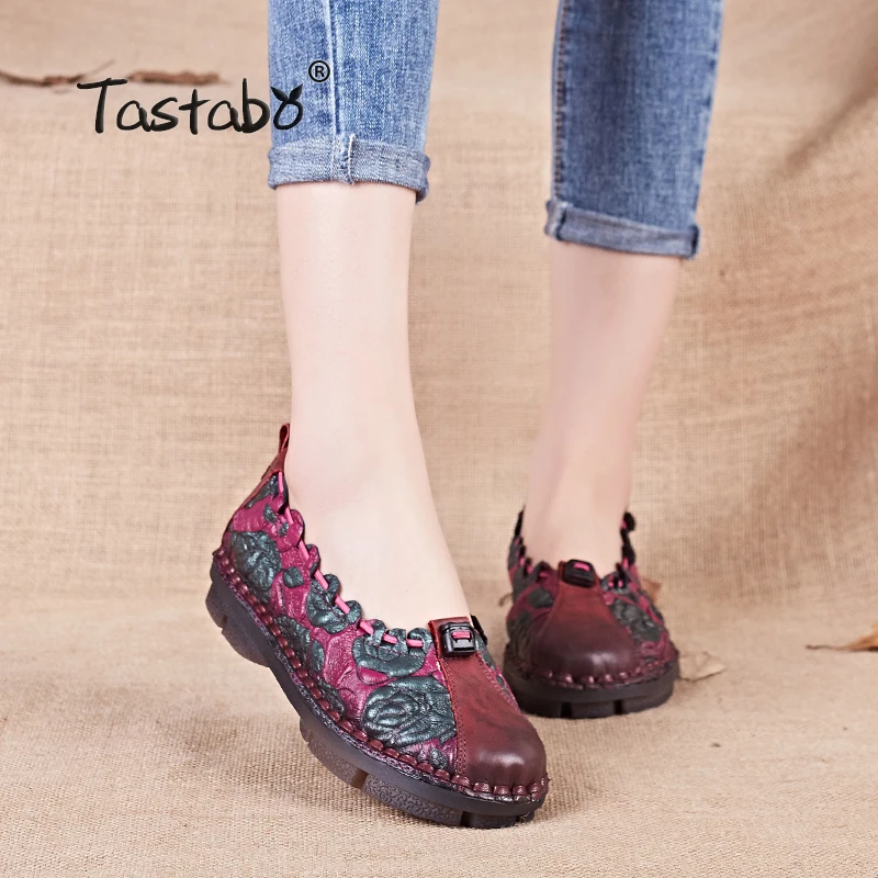 Kopen Goedkoop Tastabo Zomer Bloemen Geplooide Schoenen Vrouwelijke Echte Lederen Flats Mode Vrouwen Schoenen Slip on Verpleegkundige Peas Loafer Flats Online