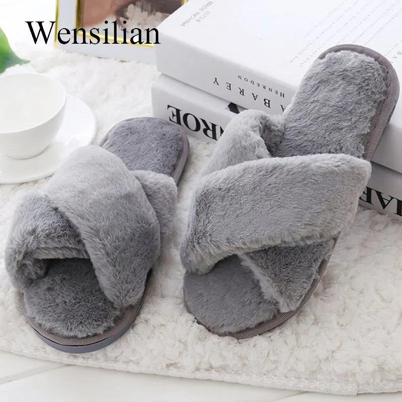 Beste Koop Vrouwen Slippers Winter Harige Slides Pluizige Bont Warme